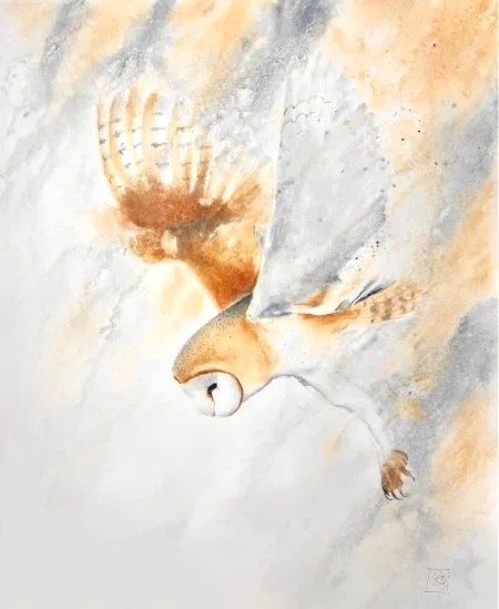 Extract from ‘Elemental’ - new Barn Owl watercolour painting, 16×20”
